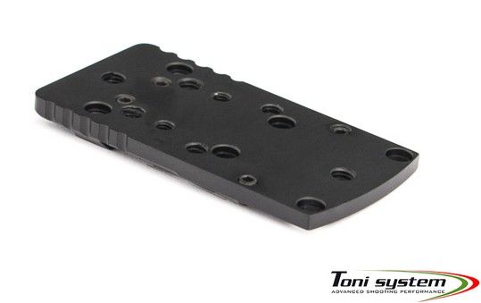 Plaque adaptatrice TONI SYSTEM à monter à la place de la hausse sur queue d'arronde des Glock 17, 19, 22, 23, 34 ou 35